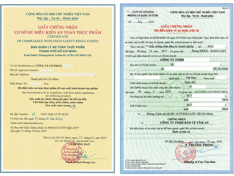 • Giấy phép doanh nghiệp và đăng ký ngành nghề
